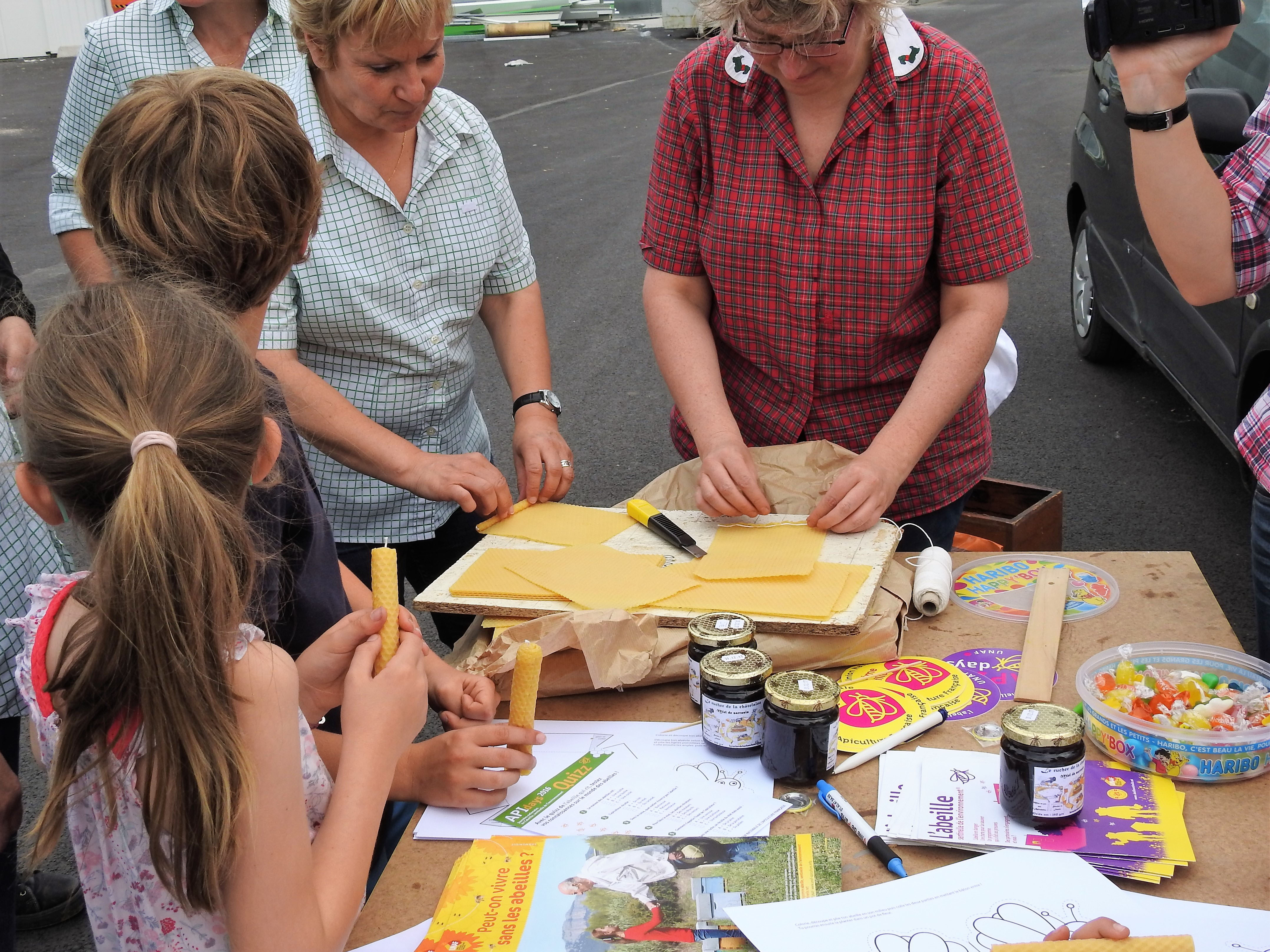 - Atelier de fabrication de bougie en cire : les adultes font la file d’attente pour en avoir une, voire deux bougies, comme les enfants !