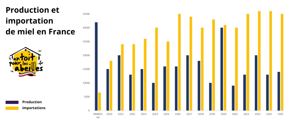 Production et importation de miel en France de 2010 à 2025